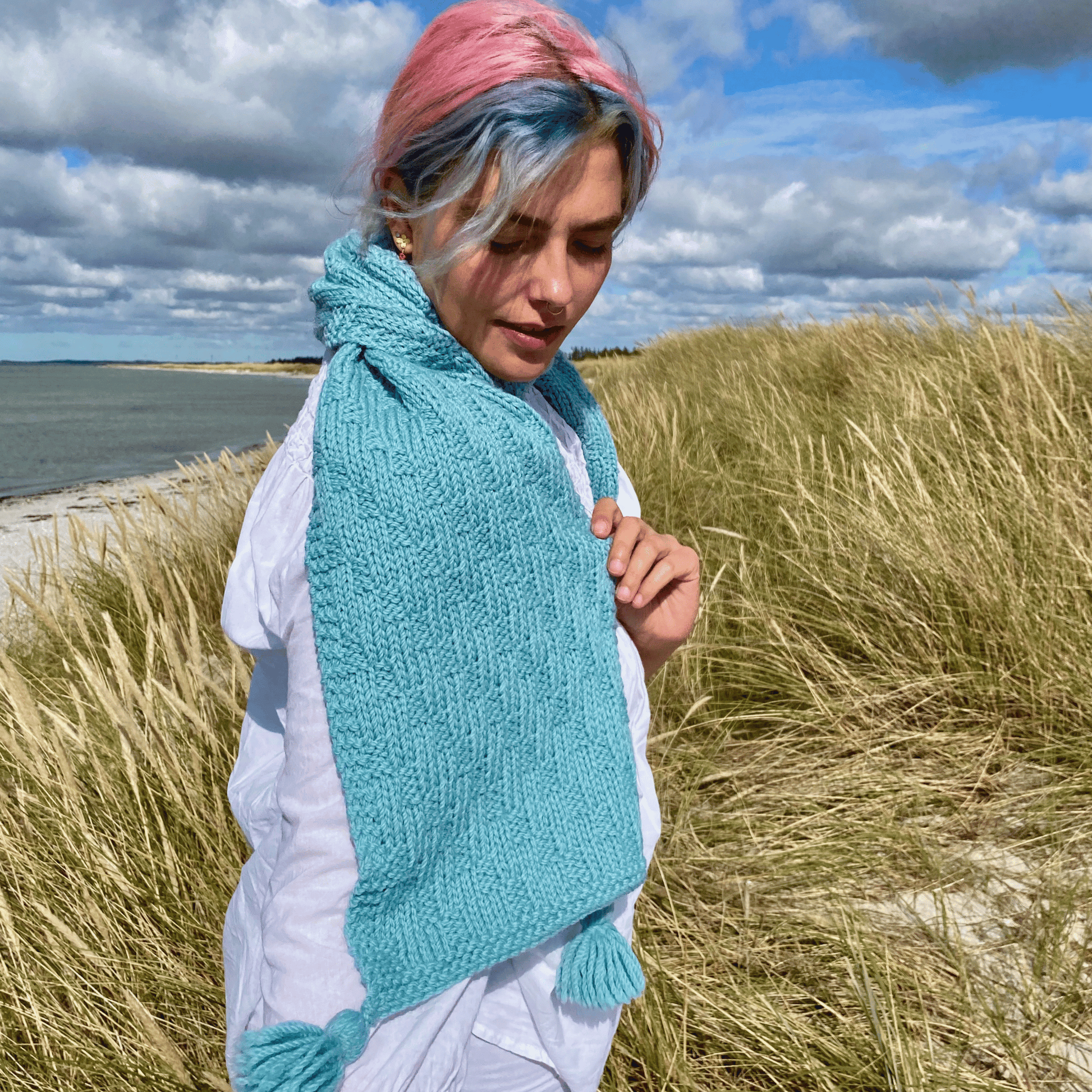 Østersø vil holde din hals dejlig varm i de kolde vintermåneder. Tørklædet strikkes i et tykt uldgarn på pinde 7 mm, og det tager ikke mange timer, før tørklædet er klar til at komme af strikkepindene. Mønsteret dannes af forskudte ret- og vrangmasker, der giver det strikkede en dybde og en struktur, der passer godt til det tykke uldgarn. Hvert hjørne prydes med en klassisk kvast. Tørklædet er enkelt at strikke og er et velegnet projekt til strikkere med begrænset strikkeerfaring.
